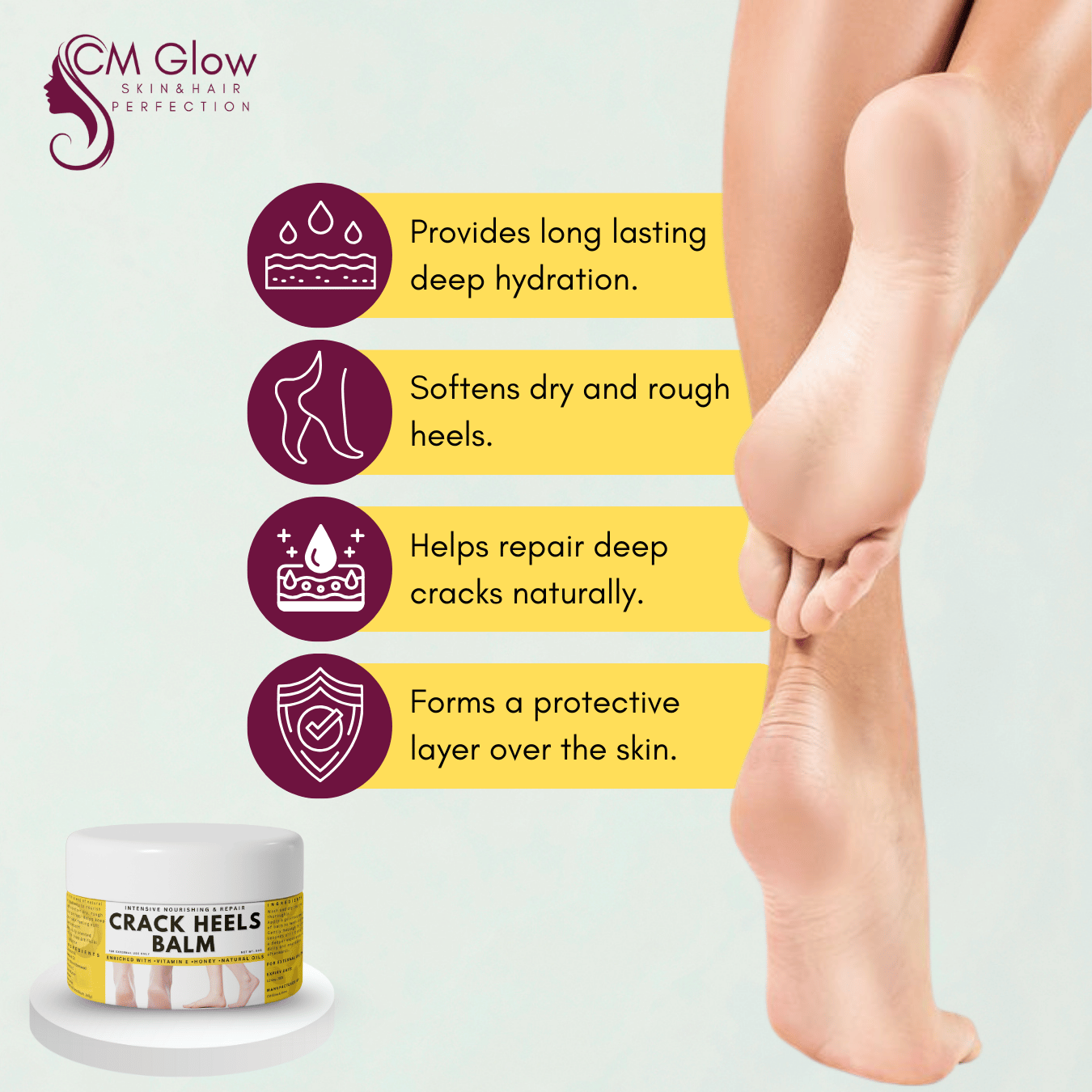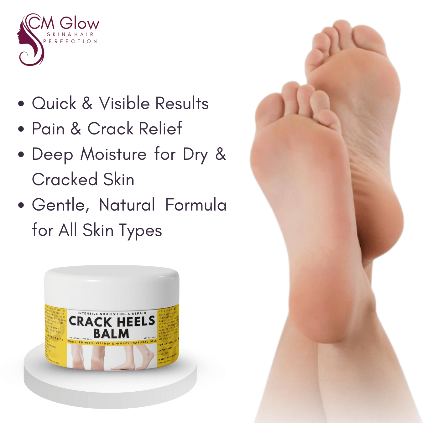 Our Cracked Heels Balm delivers fast heel repair with deep moisture, healing dry, rough, and cracked feet. Its rich, nourishing formula works overnight to soften skin and give smooth, healthy heels—faster than ordinary creams.